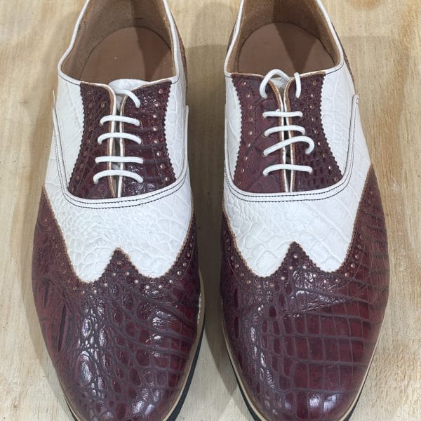 G Brogue – Burgundy Croc & Cream Croc With Facing – Black EVA Sole